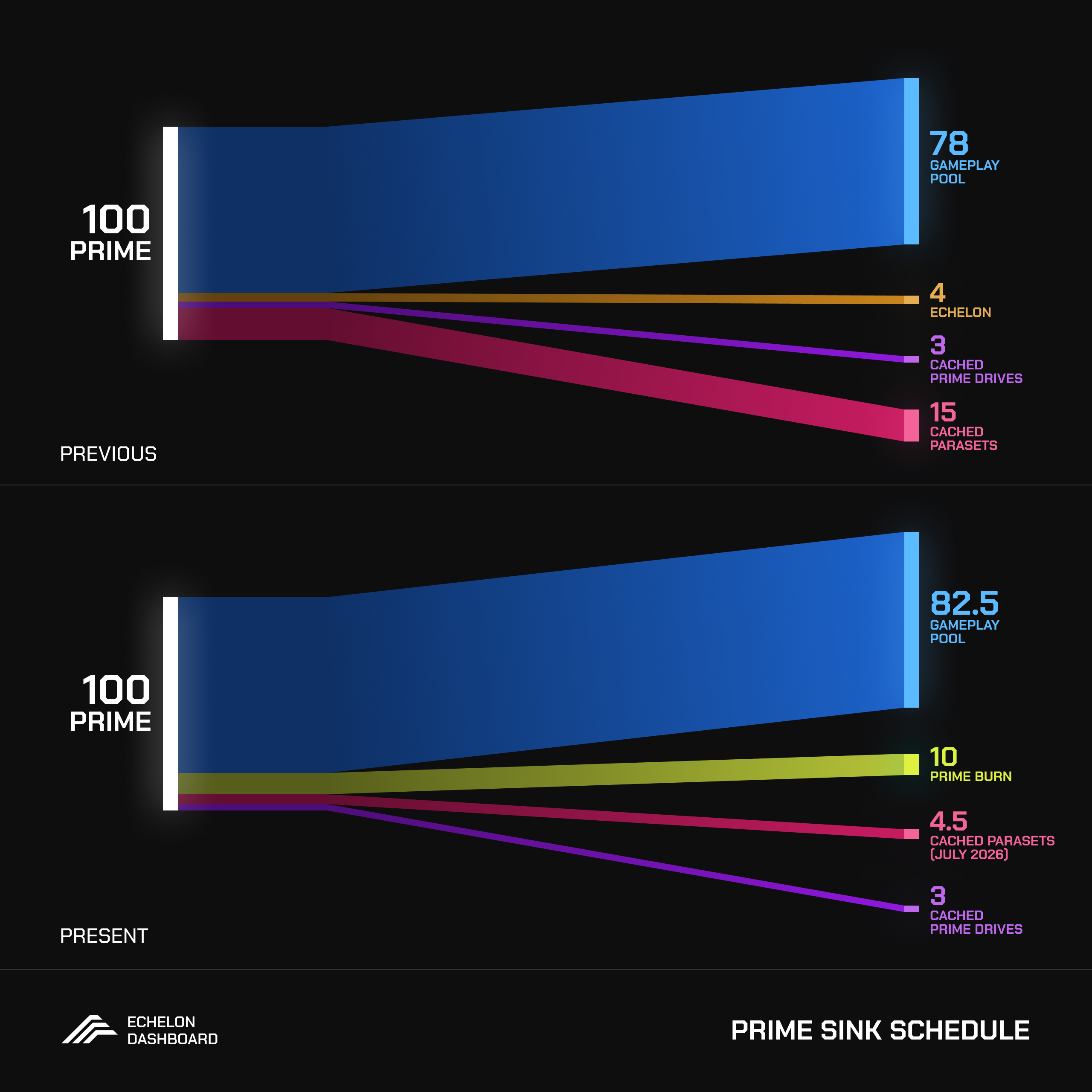 <figure><img src="https://3393150385-files.gitbook.io/~/files/v0/b/gitbook-x-prod.appspot.com/o/spaces%2Fej5Uo8n5yoGrIX5dB65Q%2Fuploads%2FgZPw0yZQZ6MpaI8vpyVB%2FSink%20Schedule%202025.png?alt=media&#x26;token=9520f078-0a64-4326-9d70-69673d765437" alt=""><figcaption><p>More PRIME flows to the Gameplay Pool over time.</p></figcaption></figure>